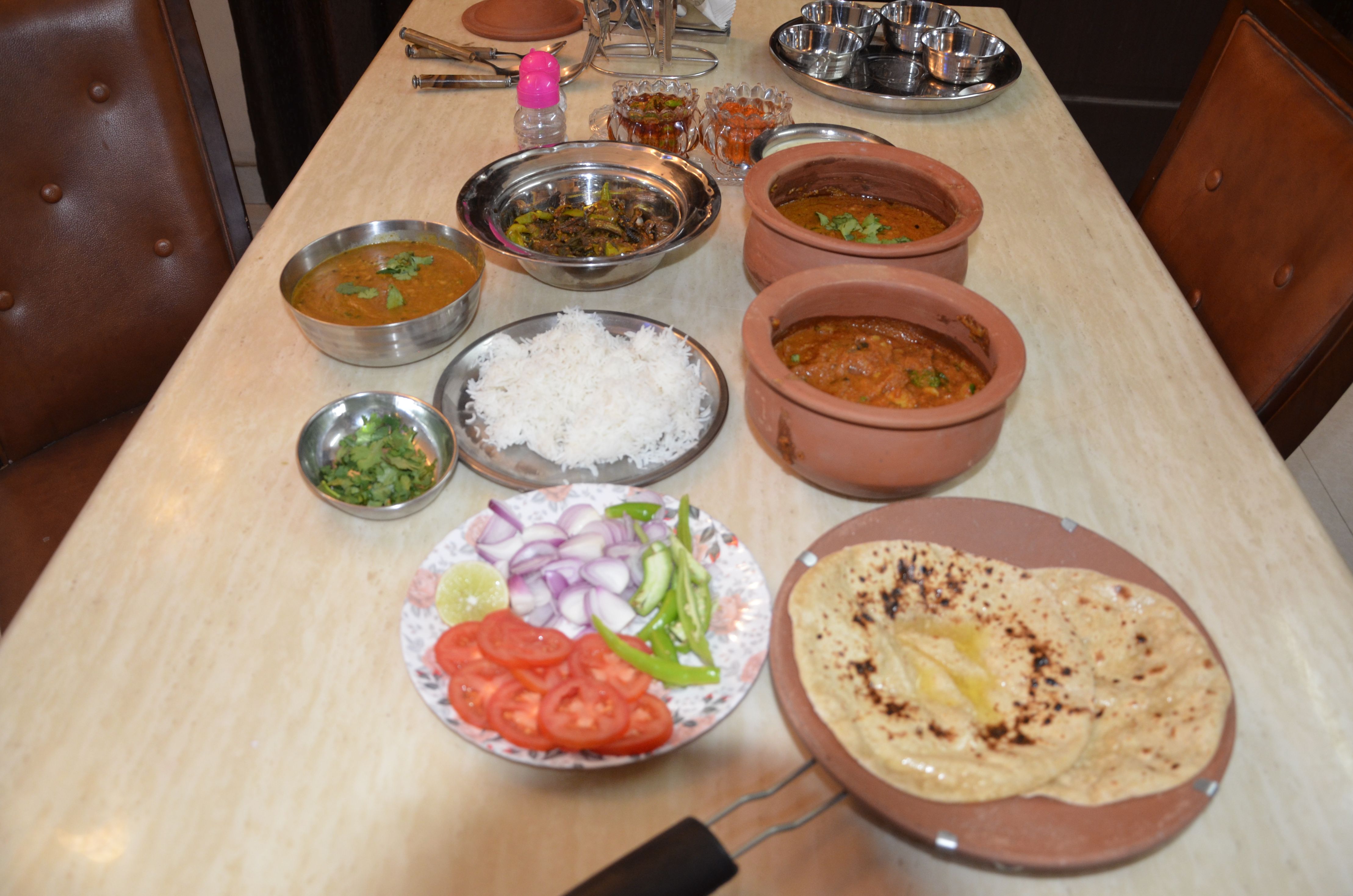 In-home meal: (1-5 guests) Soumya and Abhishek live in an apartment which is centrally located with great views of the city. Their apartment is simple and modest. They also have an outdoor terrace where they prefer to host their guests when the weather is good. Enjoy the beautiful view of Jaipur city while you sit down to eat a traditional, vegetarian meal together. Your menu might include dishes such as aloo pyaaz ki sabzi (onion potato curry), dal fry (lentils), bhindi masala (okra) served with chapati or paratha (flatbread) and rice. You will end your meal with an Indian dessert such as pista kheer (pistachio rice pudding).