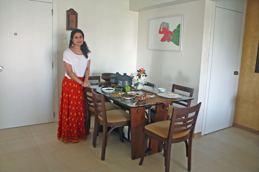 Sama lives with her parents, sister, grandmother, two cats and a dog in Versova, an upmarket neighborhood in the Andheri area of western Mumbai. She learned to cook authentic Muslim food from her dad, who himself is a passionate food lover and who inspires Sama to prepare all of her spice pastes and masalas using a traditional grinding stone.
