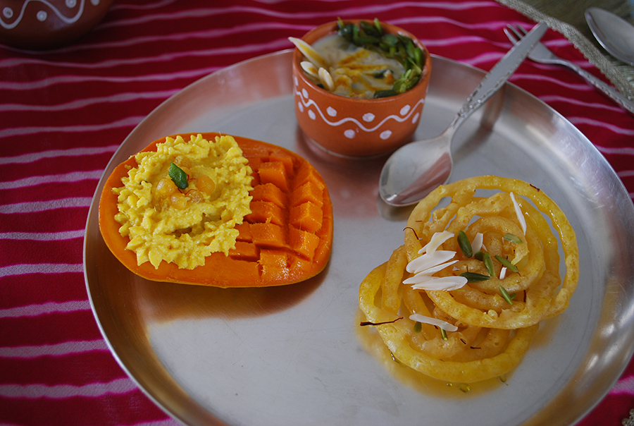 In-home meal: (1-30 guests) Nina likes to present various regional cuisines and the décor and music she chooses to enhance the chosen region of the day. She believes in a holistic experience from the welcoming rituals, décor, table set-up, and of course – most important of all – the delicious food! When serving traditional Rajasthani cuisine, Nina welcomes you with an aarti (an auspicious traditional custom in Rajasthan) and a Rajasthani drink such as mogra flower sherbet (fresh jasmine flavored drink). Enjoy various appetizers while Rajasthani folk music plays in the background. Your main meal will be served on a shining silver thaali, “Maharaja-style”. Some of the dishes you will sample may include dum aloo (baby potatoes flavored with traditional spices), five lentil panchmel (five lentil curry), and gatta pulao (steamed gram flour rolls in rice), matki saffron curd (yogurt served in a clay pot), and dahi vada (lentil dumplings in a spiced yogurt sauce). All this will be accompanied with various pickles, chutneys, salad and crushed papad. Top of the meal with a dessert such as jalebi (deep-fried pretzel shaped dough dipped in a sugar syrup) or and rice pudding. As a customary end to every traditional Rajasthani meal, Nina serves mouth-fresheners like cardamom, cloves, and fennel seeds. With Nina as your host, you could get a wide variety of vegetarian cuisines including East Asian, Mediterranean, South American, Spanish, European, Lebanese, Continental and of course, Indian! Needless to say, you can expect the most traditional food with her own special twist in a very interesting and innovating way. Please let her know if you would like to try a certain kind of cuisine.