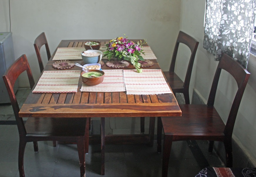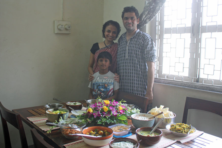 You will be greeted by Nithya, Jaideep and Duke, her Labrador, at their apartment in the centrally located neighbourhood of Dadar. Nithya is a Tamilian Brahmin and her food and cooking style and are heavily major influenced by the Iyengar community in south India. As you sip on your welcome drink she will tell you how the cooking of the Iyengar community is largely rice-based and is traditionally prepared without any onion and garlic. They use a wide variety of legumes such as lentils, parrupu (pigeon pea), ulundu (black gram) and kadalai paruppu (split chickpeas) and, like all south Indian food, there is also the use of coconut.