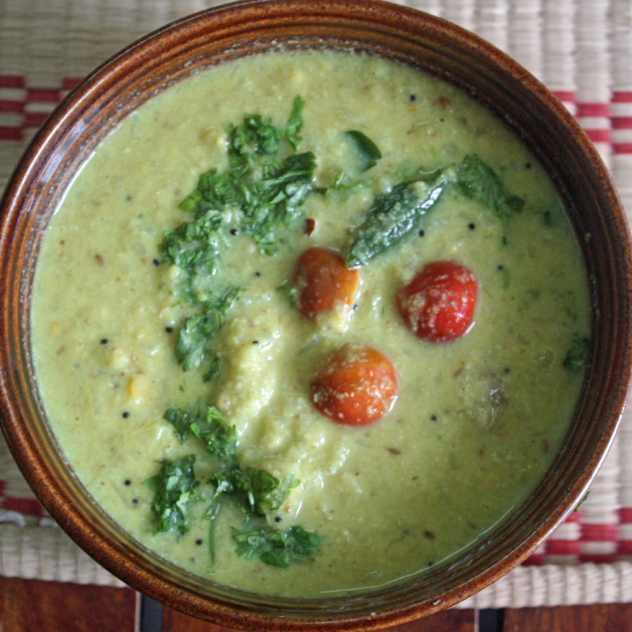 A traditional Iyengar lunch/dinner might include two to three varieties of rice, such as coconut rice, tomato rice or yogurt rice which are be eaten with kuzhambu (lentil and vegetable stew), saturmadu (a tangy soup seasoned with spices), vegetables in coconut gravy, or china urilakizhangu (small roasted baby potatoes) and paruppu usili (french beans). No south Indian the meal complete without appam (a pancake made with fermented rice) and poppadum (thin crispy wafers). To finish you’ll enjoy a sweet rice pudding called payasam. Despite the numerous restaurants in Mumbai that serve south Indian food none can compare to the taste of traditional home-cooked meal like this one!