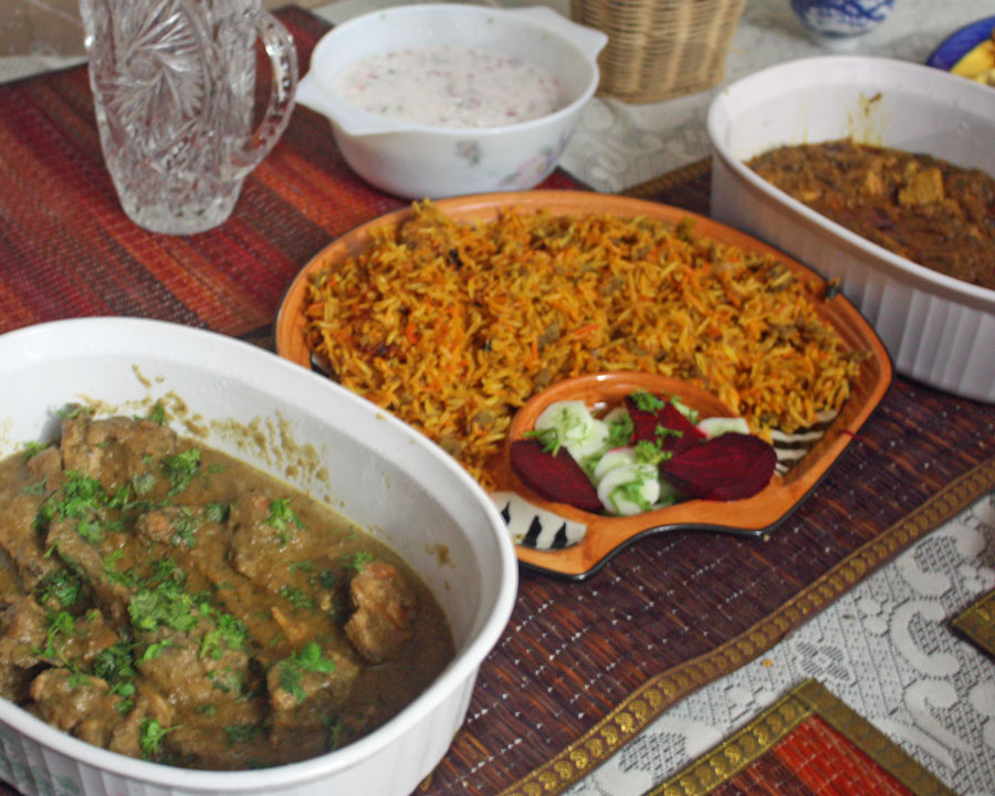 Tamanna hails from Delhi in north India and her cooking has a strong Mughlai influence. In addition to her famous biryani, you’ll get to taste some of her other signature dishes perhaps including her meltingly tender mutton shaami kebabs, anari shaami kebabs (vegetarian kebabs made of pomegranate seeds), chicken rezala (chicken curry), gobi gosht (cauliflower and mutton), lagan ka paneer (a vegetarian take on the famous Hyderabadi chicken dish), dry fruit kheer (pudding) or sheer khorma (vermicelli pudding). You can be assured that in every meal there will be a surprise dish with a secret ingredient from Tamanna’s innovative kitchen!