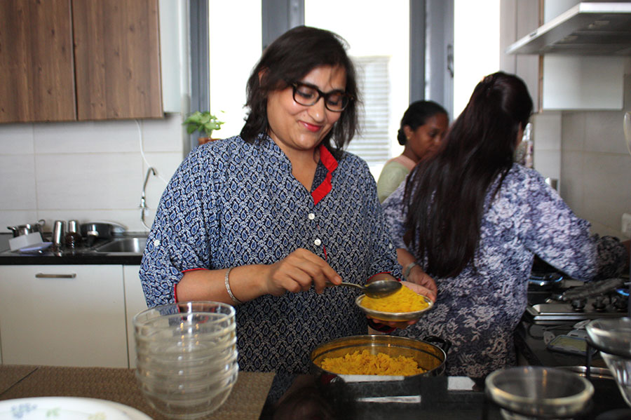 Vandana lives in a beautiful apartment with her husband, Vikramjit, and their two daughters, Saanchi and Sakshi. Vandana started baking at age 13 and learned most of her cooking skills from her mother and older sisters. She has passed her passion for food on to her daughters as well. Sakshi is studying culinary arts and has been cooking since the age of 3, and Saanchi is a journalism student who loves to bake teacakes and brownies in her free time. Vandana loves hosting friends and family and even her daughter Saanchi enjoys meeting and serving people and learning about different cultures. Vandana also bakes for orders on the side and offers a selection of over 18 different varieties of brownies to choose from, in addition to from vegan cakes and chocolates.